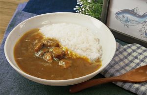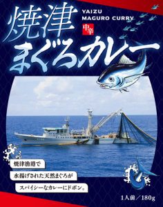 焼津まぐろカレーは焼津船元「福一漁業」の大型巻き網船「福一丸」で漁獲したまぐろを焼津港に水揚げし、焼津市内の工場でスパイシーに仕上げました。